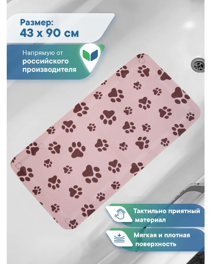 Коврик для ванны VILINA c присосками для животных 43х90 см. розовый