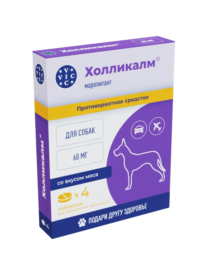 Таблетки для собак противорвотные VIC Холликалм 24мг 4 таблеткиХорошие таблетки. Срок годности и прочее в норме