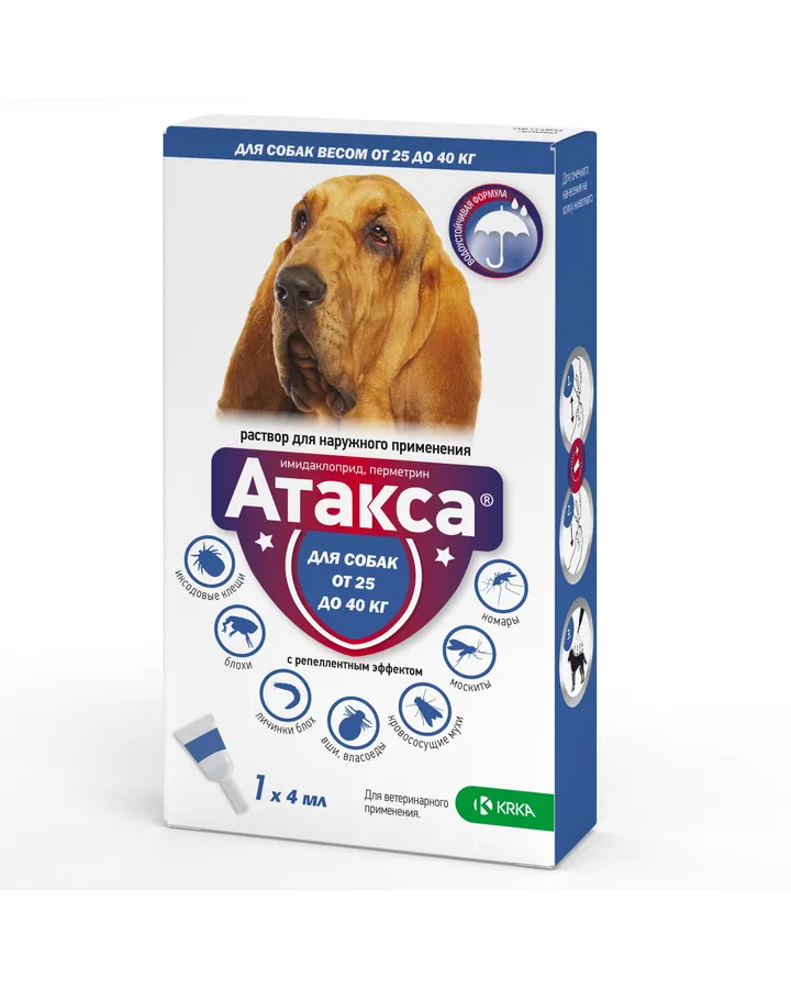 Капли для собак KRKA Атакса на холку от блох и клещей 10 до 25кг 2.5млВсегда покупаем эти капли, даже зимой. Летом комбинирую с таблетками от клещей. Капли хорошие, лучше наносить перед прогулкой
