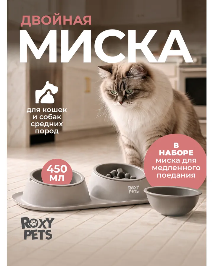 Миска для кошек и собак ROXY PETS 300 млДостаточно удобная кормушка. Кошка ест из нее спокойно, сразу привыкла к новой. Пластик легко моется. Сама кормушка стоит устойчиво, не скользит.