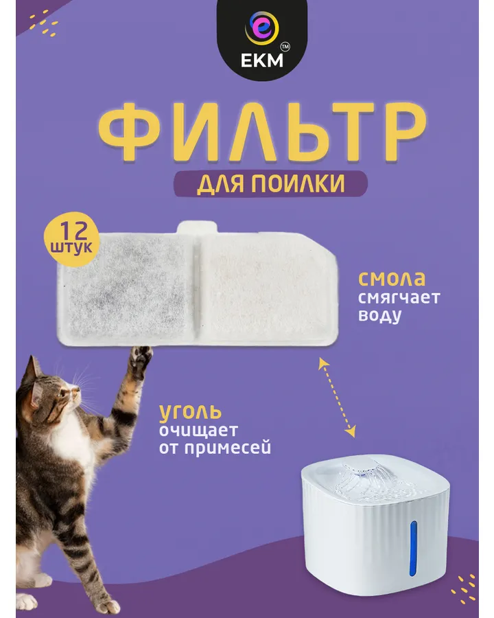 Фильтр для поилки ЕКМ для кошек и собак угольный 12 шт
