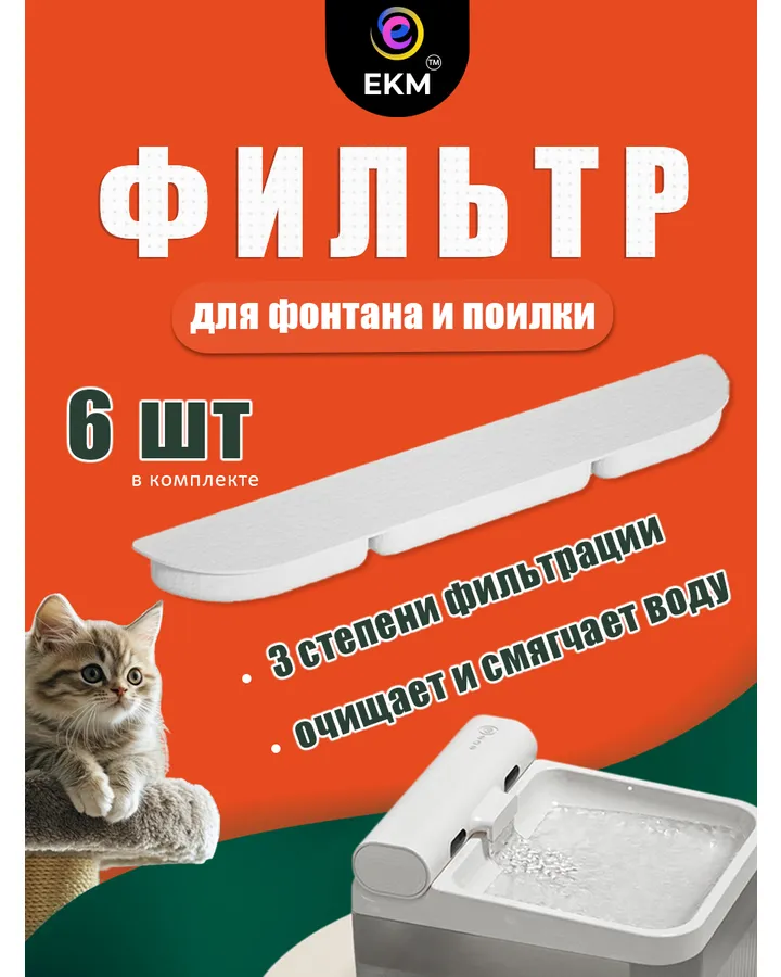 Фильтр для поилки ЕКМ для кошек и собак угольный 6 шт