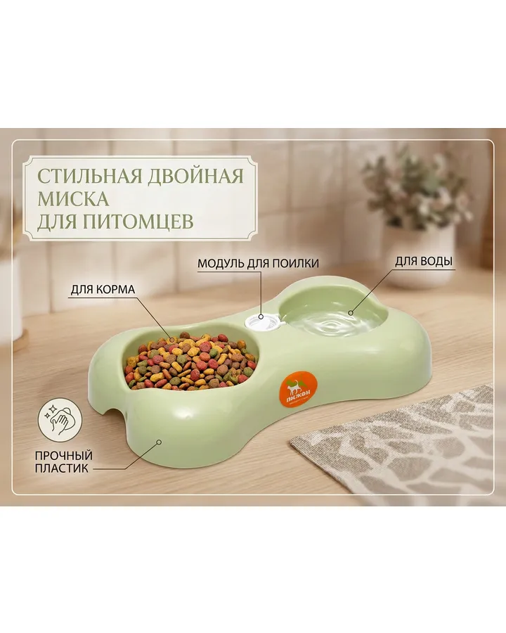 Миска Пижон двойная с креплением для бутылки 150/300 мл 29 5х15 см голубой