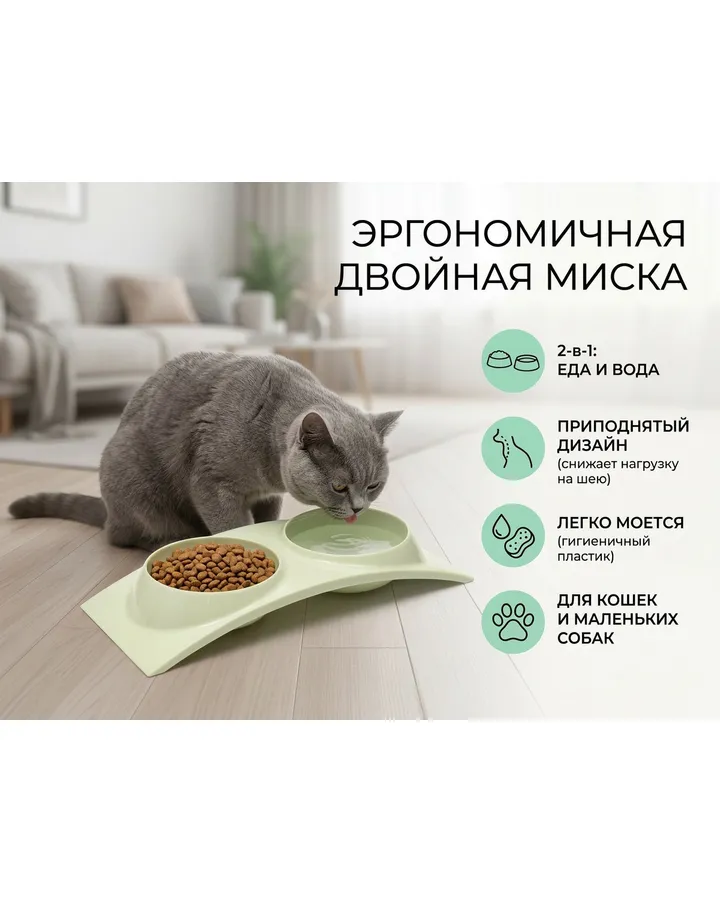 Миска Пижон пластиковая двойная 34х20х6.5 см голубая 400 мл