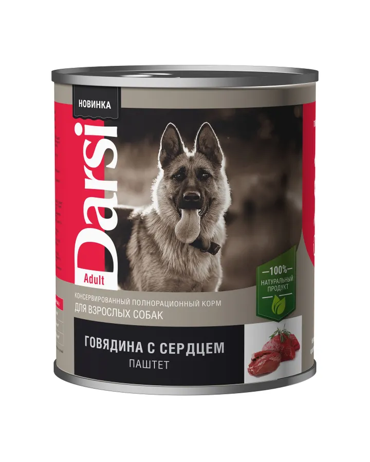 Корм для собак Darsi говядина с сердцем консервированный 850г