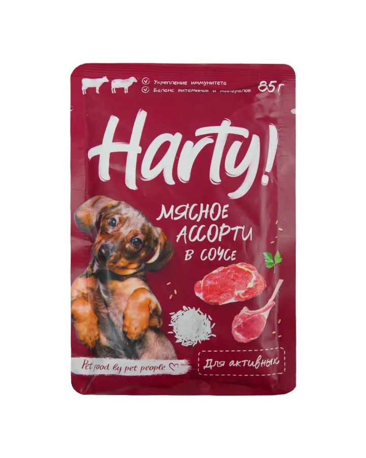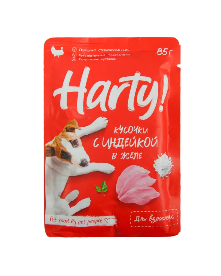 Корм для собак Harty 85г для чувствительного пищеварения кусочки с кроликом в желеОчень хороший корм, собака ест с удовольствием.