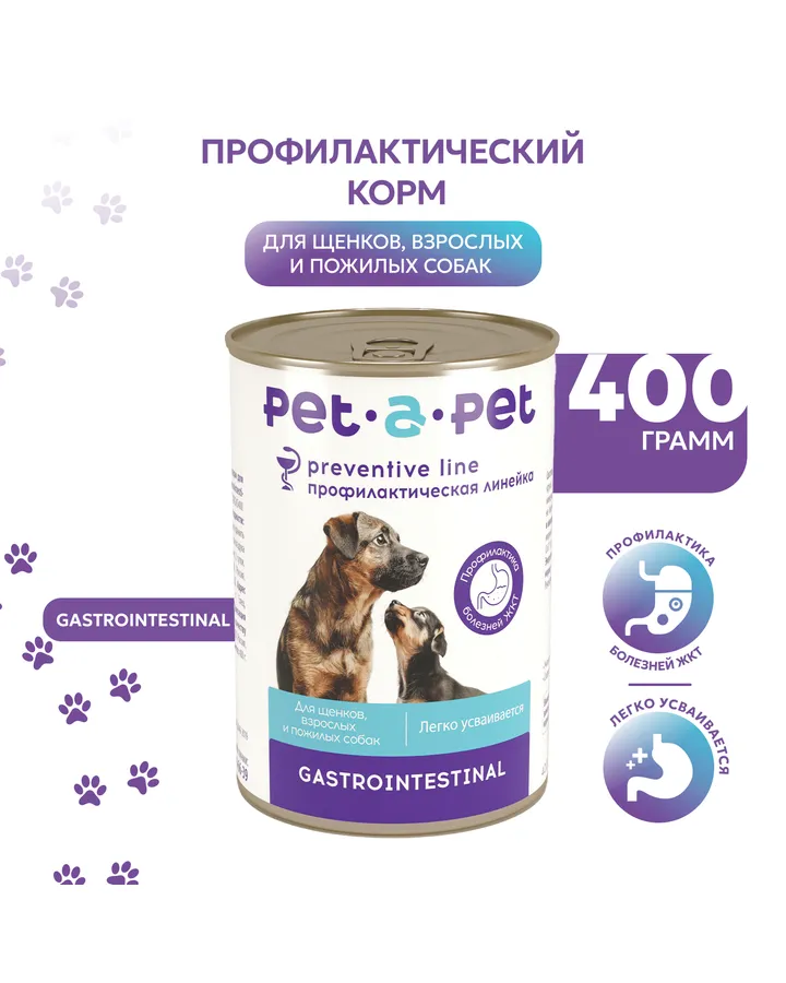 Корм для собак Pet-a-Pet 400г диетический профилактика болезней ЖКТ GastrointestinalНакопительная скидка