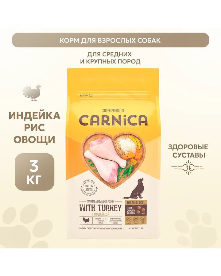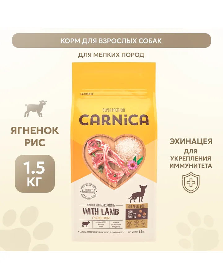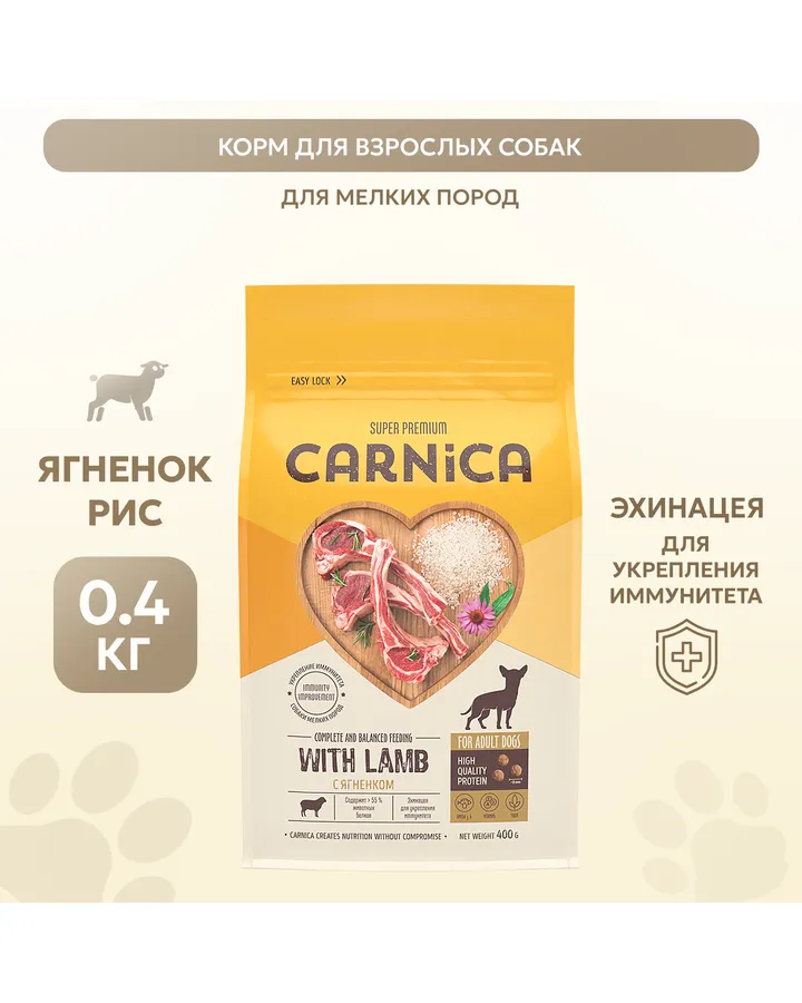 Корм для собак Carnica 0.8кг ягнёнок-рис для средних и крупных пород сухой