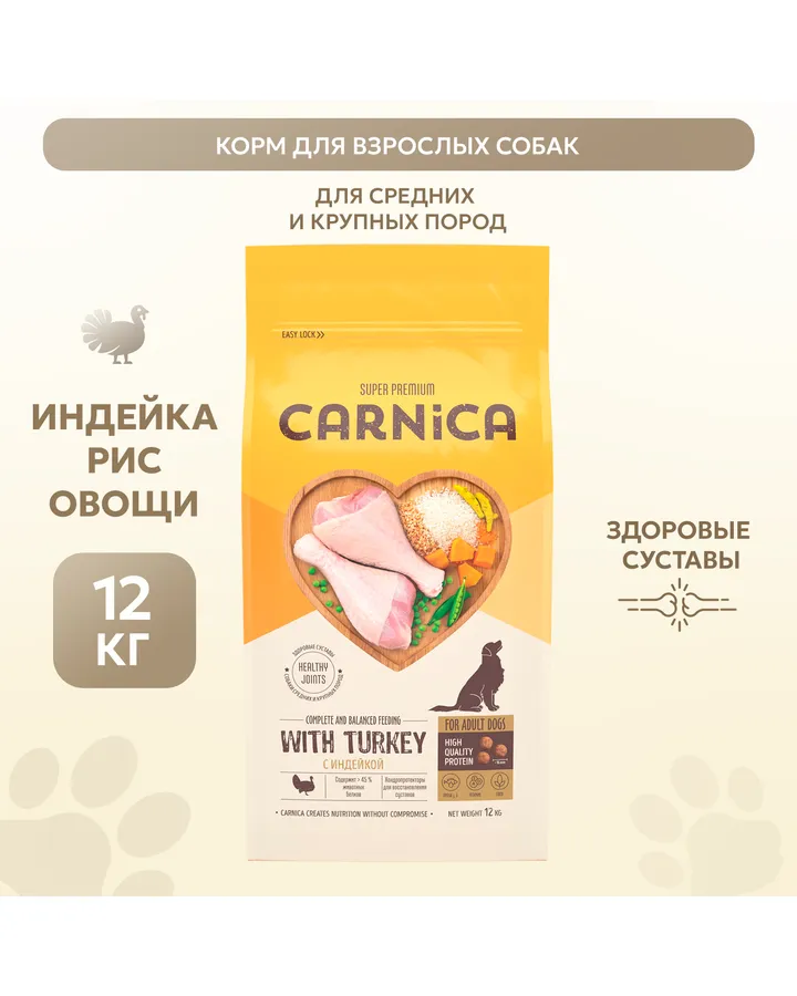 Корм для собак Carnica 12кг ягнёнок-рис для средних и крупных пород сухой