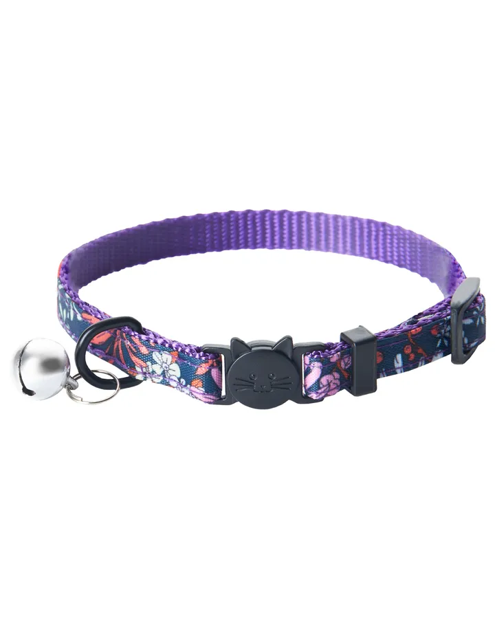 5Ошейник для кошек Zoo One Цветы с безопасной пряжкой и бубенчиком 10мм*18-28см ФиолетовыйХороший ошейник, в самый раз для кошки, которая гуляет на улице