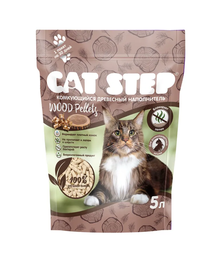 Наполнитель для кошек Cat Step Wood Original комкующийся растительный 5л