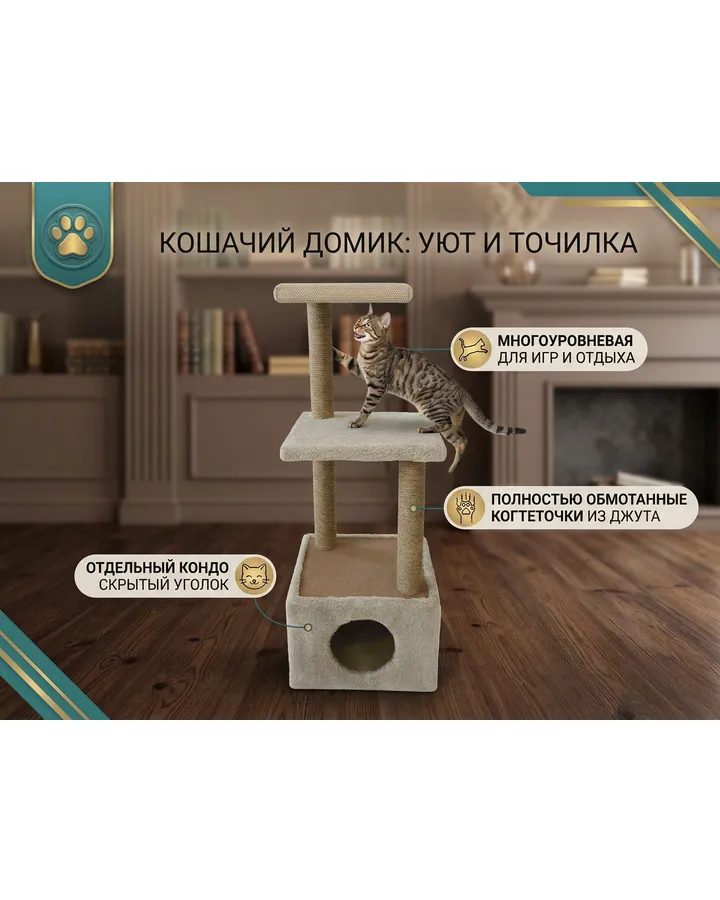 Домик для кошки с когтеточкой Pet БМФ Бежевый