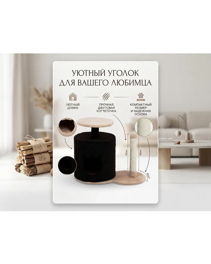 Домик для кошки с когтеточкой Pet БМФ Черный