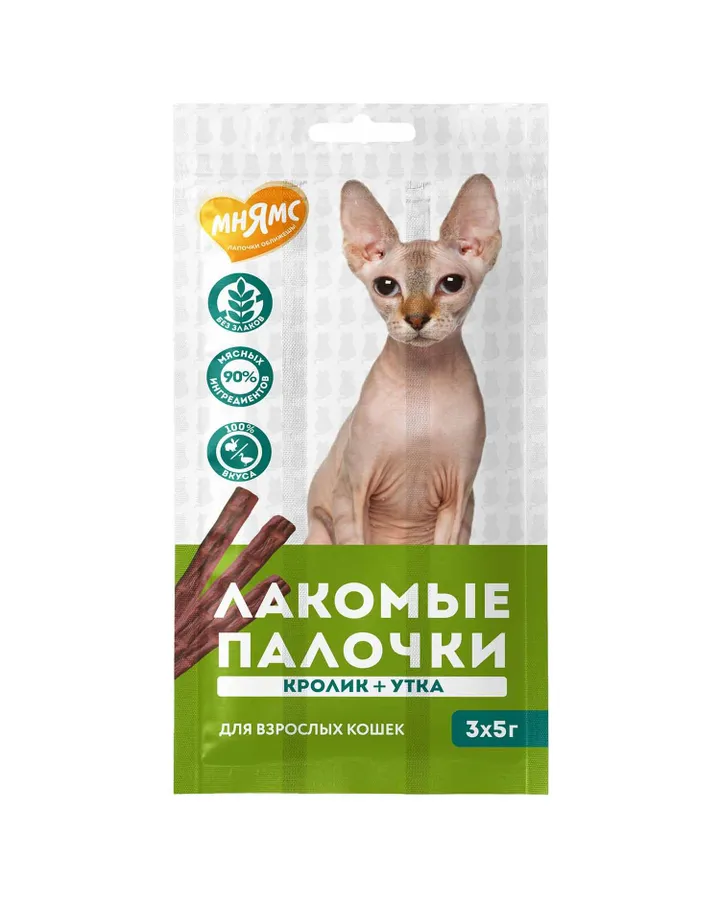 5Лакомство для кошек Мнямс лакомые палочки из цыпленка и печени 10*5гСамые любимые палочки; И качественные