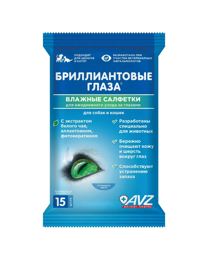 Салфетки для кошек и собак АВЗ Бриллиантовые глаза влажные