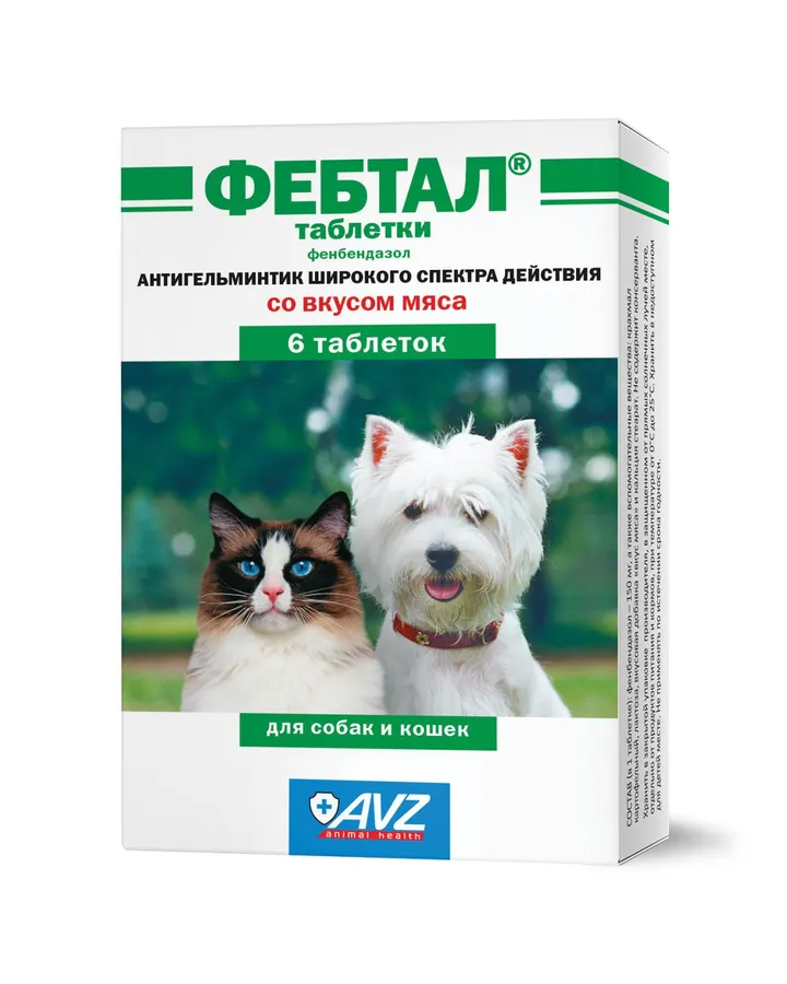 Препарат для кошек и собак АВЗ Фебтал 6таблеток