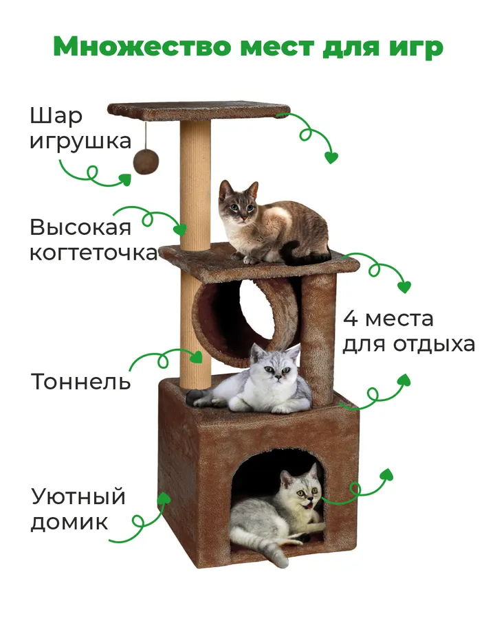 Когтеточка-домик для кошек 4в1 ZURAY бежевый