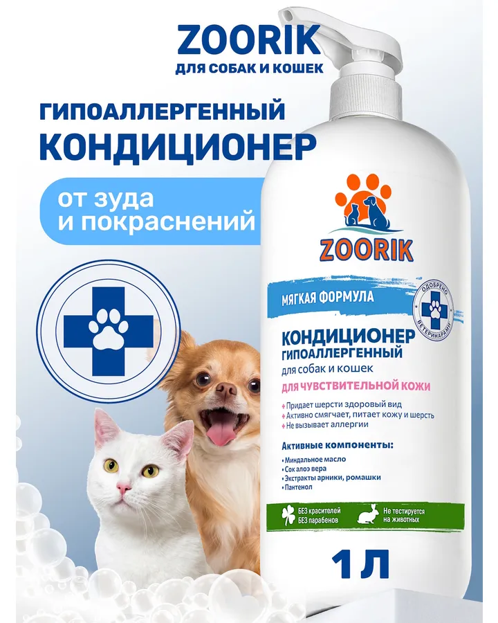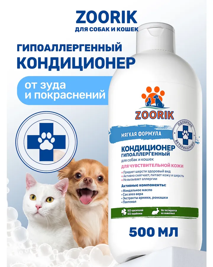 5Кондиционер для собак и кошек ZOORIK гипоаллергенный 500 млХороший,шерсть у йорка шелковистая и не путается