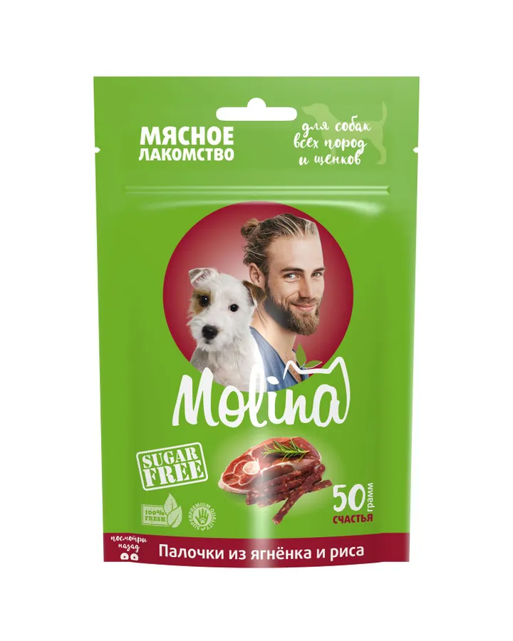 Лакомство для собак Molina Палочки из ягненка и риса 400гНе для "побаловать", а накормить.Лакомство нужно использовать, как корм, так как большая ("выгодная") упаковка должна быть съедена за 14 дней. Беру вкусняшки для похвалы. Но к таким сроками после вскрытия не была готова. Будем хвалить чаще)))Собака молину ест хорошо. Коробочка на вид не большая, но палочек в ней действительно много. Они в меру твёрдые, уходят с треском за ушами). Щпиц ест с удовольствием.