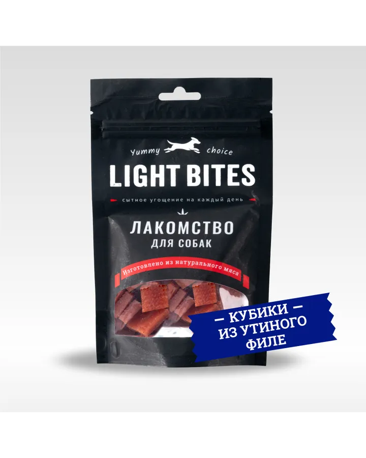 Лакомство для собак LIGHT BITES 55г Утиное филеХорошее лаеомство, удобно брать на прогулку для дрессировки. Пес доволен, проблем у собаки не вызывает. Так как щенок всегда переживаю, когда даю что то новое. Все отлично.