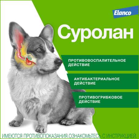 Препарат антигрибковый/антимикробный для собак и кошек Elanco Суролан 15мл👍