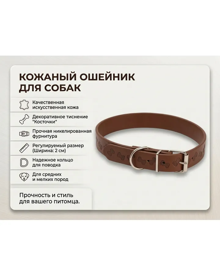 Ошейник Пижон кожаный с тиснением на синтепоне 85 х 4.5 см коричневый