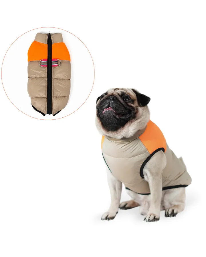 Жилетка отличная, красивая, мягкая, внутри на флисе, на спинке пришиты кольца для пристёгивания к поводку, что очень удобно. Вещь незаменимая. Всем рекомендую к покупке.