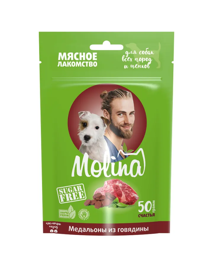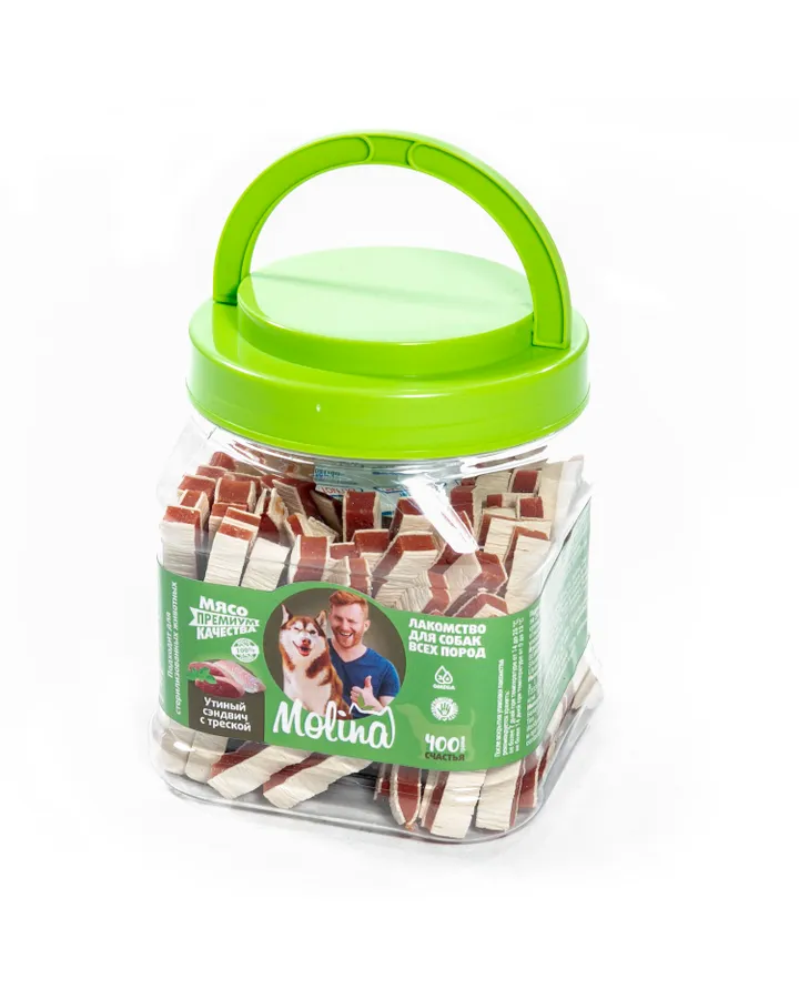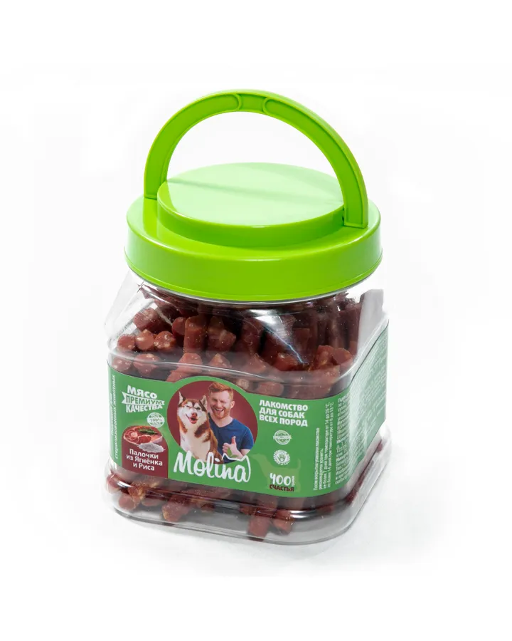 Лакомство для собак Molina Палочки из ягненка и риса 400гНе для "побаловать", а накормить.Лакомство нужно использовать, как корм, так как большая ("выгодная") упаковка должна быть съедена за 14 дней. Беру вкусняшки для похвалы. Но к таким сроками после вскрытия не была готова. Будем хвалить чаще)))Собака молину ест хорошо. Коробочка на вид не большая, но палочек в ней действительно много. Они в меру твёрдые, уходят с треском за ушами). Щпиц ест с удовольствием.