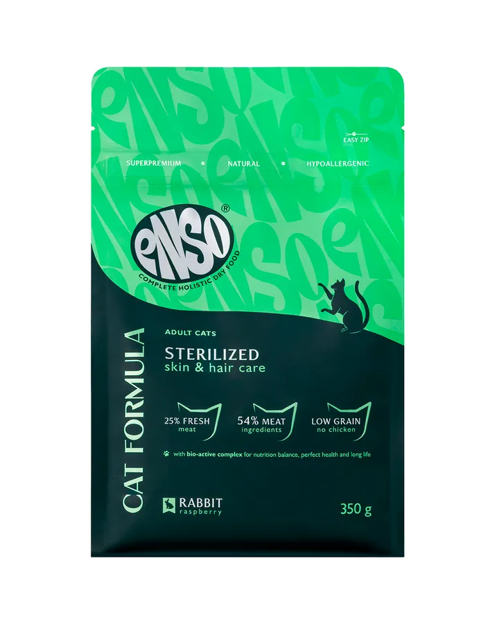 Корм сухой для стерилизованных кошек ENSO Cat formula Sterilized со свежим кроликом с добавлением малины 0.35кг