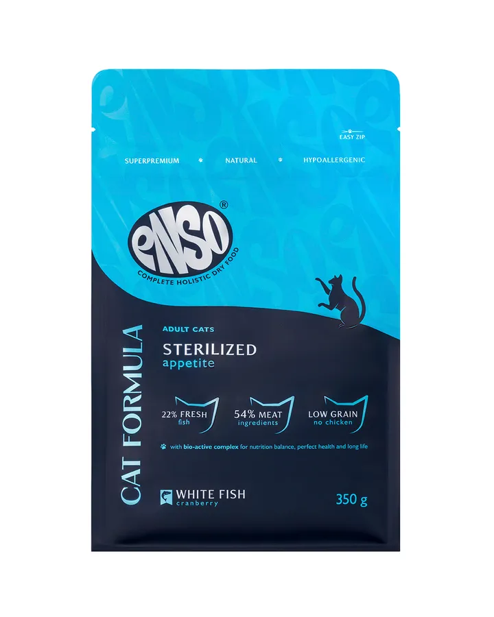 Корм сухой для стерилизованных кошек ENSO Cat formula Sterilized со свежей белой рыбой с добавлением клюквы 0.35кг