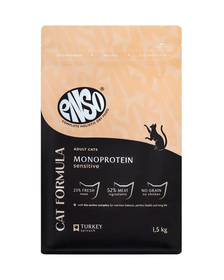 Корм сухой полнорационный для кошек ENSO Cat formula Monoprotein с чувствительным пищеварением со свежей индейкой 1.5кг