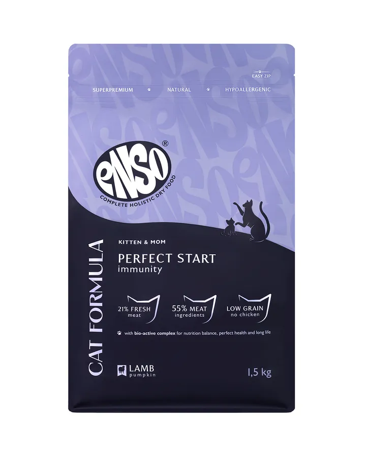 Корм сухой для котят от 1 месяца ENSO Cat formula Perfect start со свежим ягненком с добавлением тыквы 1.5кг