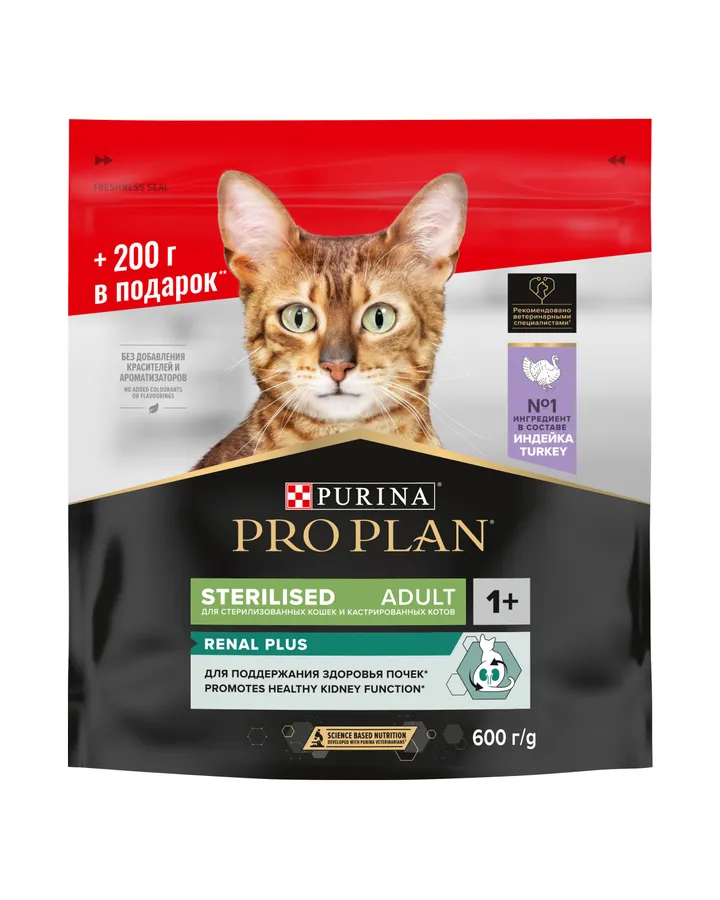 Корм сухой для кошек PRO PLAN Sterilised Optirenal 3кг лососьНакопительная скидка