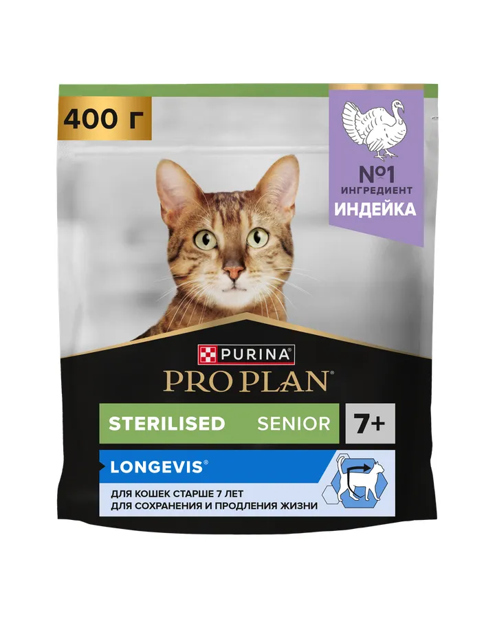Корм сухой для кошек PRO PLAN LONGEVIS 400г с индейкой для стерилизованных 7+ летНакопительная скидка