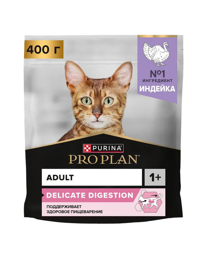 Корм сухой для кошек PRO PLAN DELICATE DIGESTION 400г с индейкойНакопительная скидка