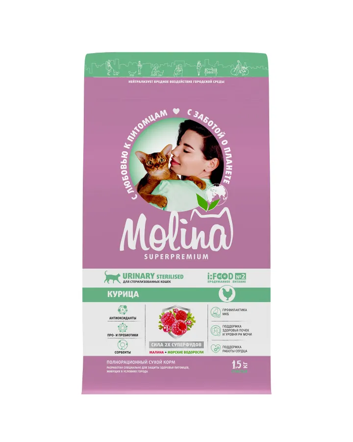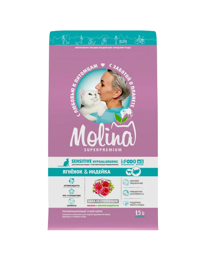 Корм для кошек Molina чувствительное пищеварение с ягненком и индейкой 1.5кг