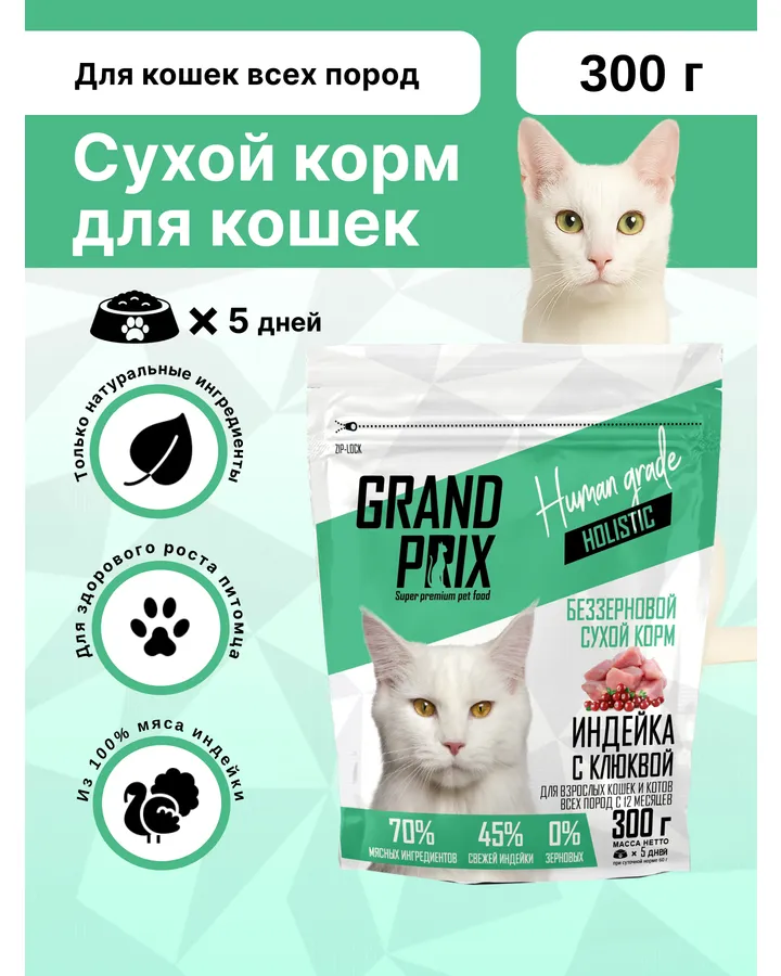 4Корм сухой Grand Prix Для кошекКорм хороший,гранулы крупные,но кошке есть удобно,пахнет хорошо,состав вроде тоже норм.