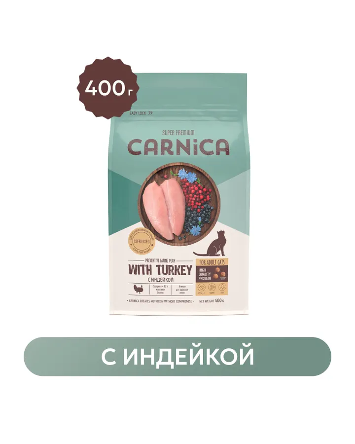 Корм для кошек Carnica 5кг с индейкой для стерилизованных и кастрированных сухойВсё отлично , корм супер