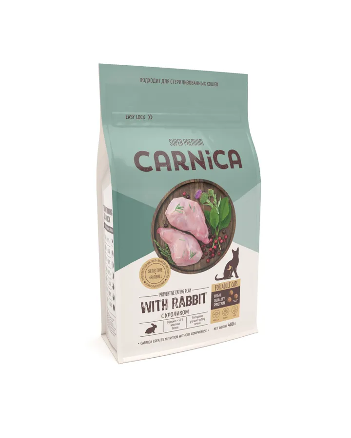 5Корм для кошек Carnica 0.4кг с уткой для поддержания здоровья мочевыделительной системы сухойКошечки нравится