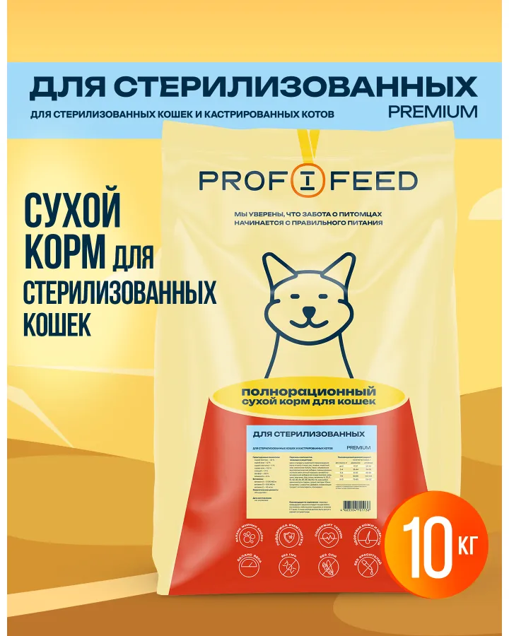 Корм сухой Profifeed для стерилизованных кошек и кастрированных котов 10кг
