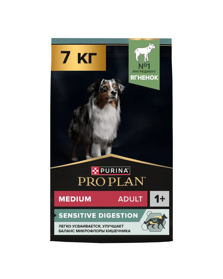 Корм для собак PRO PLAN для средних пород с чувствительным пищеварением с комплексом Optidigest ягненок с рисом 7кгНакопительная скидка