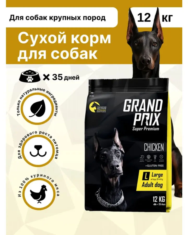 5Корм для собак Grand Prix Large Adult курица 12кгПервый раз взяла. До этого брала Go! Собака есть не отказалась, это радует)