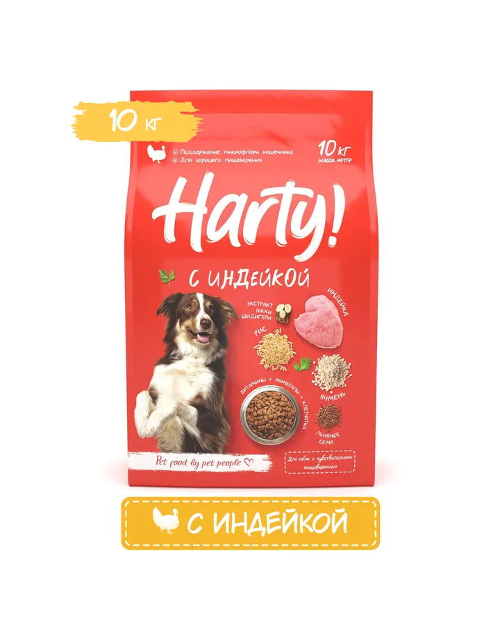 Корм для собак Harty 2.5кг мелких и миниатюрных пород с чувствительным пищеварением с индейкой и ягненком сухойОтличный корм