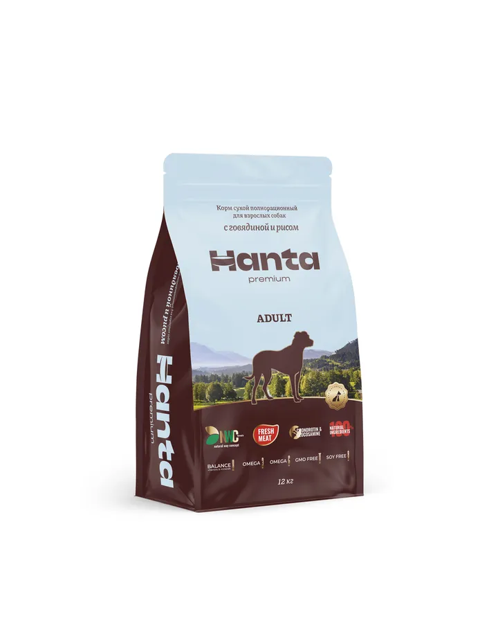 Корм сухой Hanta для взрослых собак с говядиной и рисом 12 кг