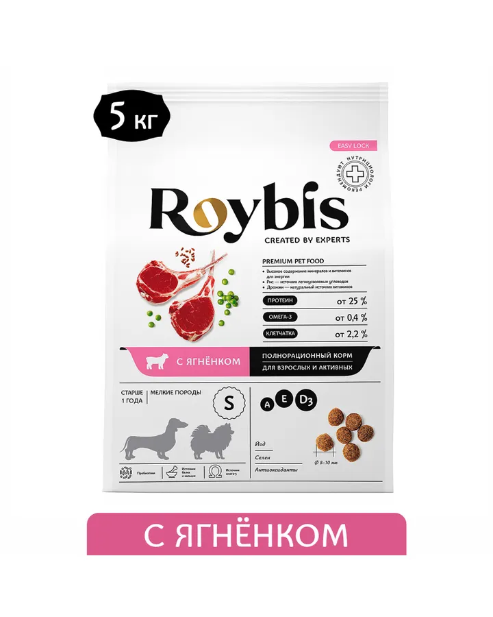 5Корм для собак Roybis 5кг с ягненком сухой полнорационный для активных взрослых мелких породХороший корм