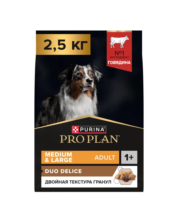 Корм сухой для собак PRO PLAN DUO DELICE 2.5 кг с говядиной для средних и крупных породНакопительная скидка