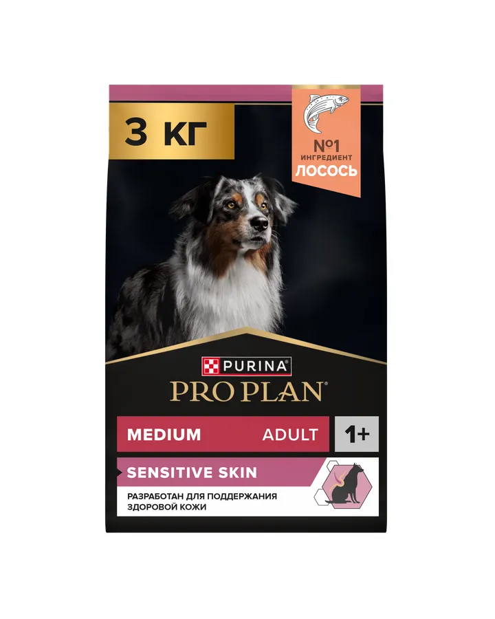 Корм сухой для собак PRO PLAN SENSITIVE SKIN 3 кг с лососем для средних породНакопительная скидка