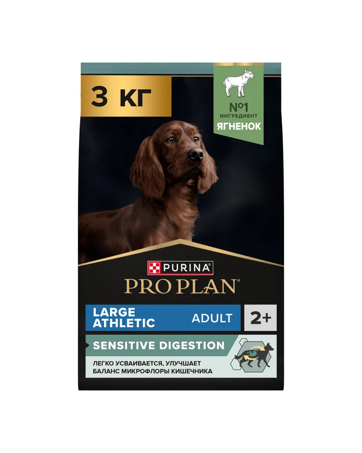 Корм для собак PRO PLAN крупных пород с атлетическим телосложением с чувствительным пищеварением с комплексом Optidigest ягненок с рисом 3кгНакопительная скидка