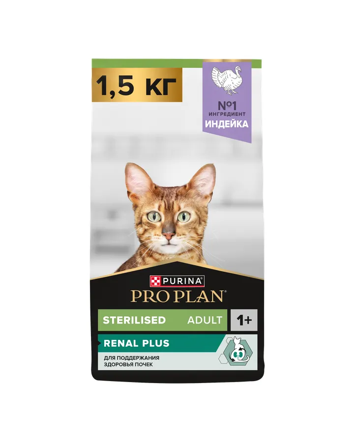 Корм сухой для кошек PRO PLAN RENAL PLUS 1.5 кг с индейкой для стерилизованныхНакопительная скидка
