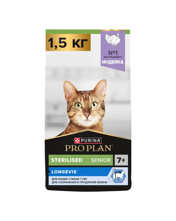 Корм сухой для кошек PRO PLAN LONGEVIS 1.5 кг с индейкой для стерилизованных 7+ летНакопительная скидка
